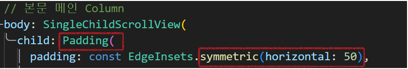 첫 번째 FutureBuilder의 Padding을 빼고body의 Column을 Padding으로 감싸주자.