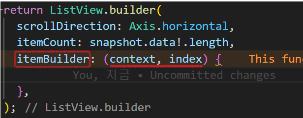 그리고 실행된 itemBuilder 함수의 index 인자를 활용해