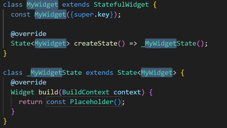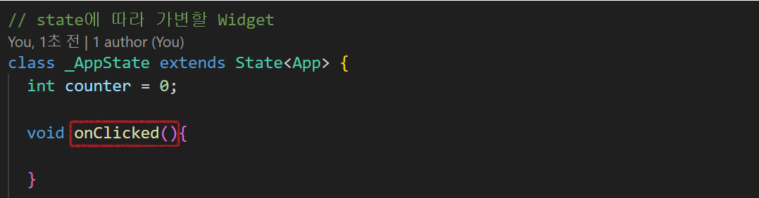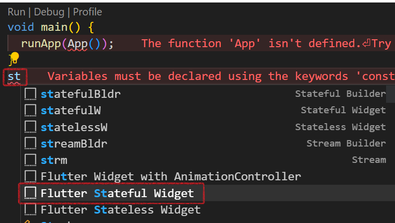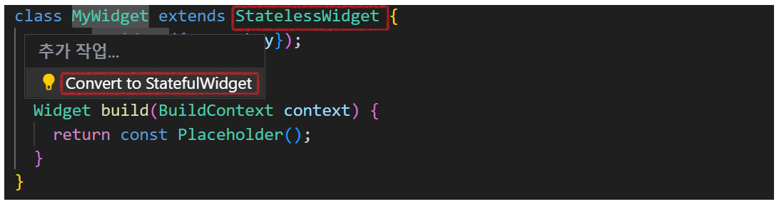 Flutter Stateful Widget이라는 자동완성이 뜨고
