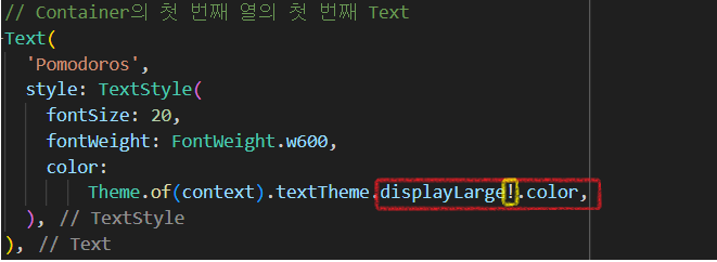 Container에Text를 넣고color는 Theme의 cardColor을 가져왔다.
