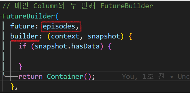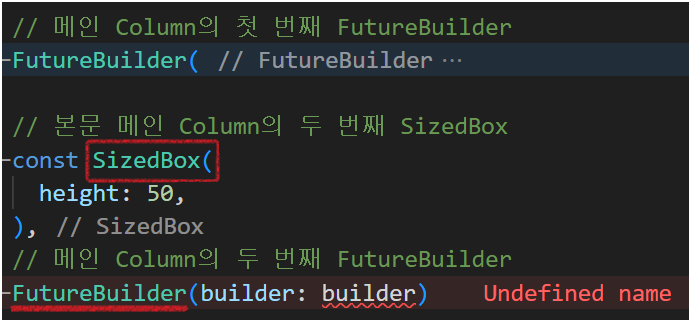 첫 번째 FutureBuilder의 Padding을 빼고body의 Column을 Padding으로 감싸주자.