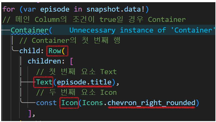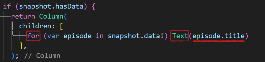 Column안에 반복문을 통해episode.title를 출력해보았다.