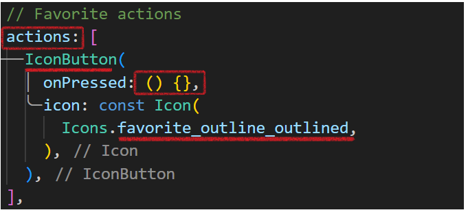AppBar에는 actions라는 리스트 위젯이 존재하는데