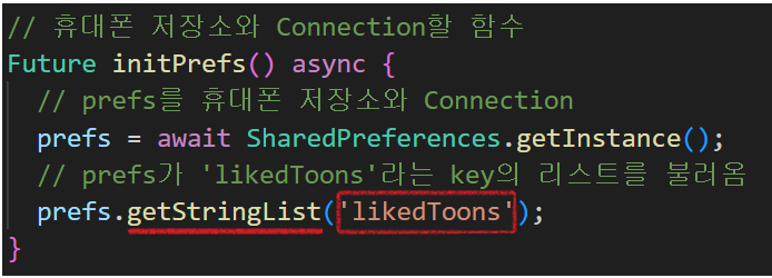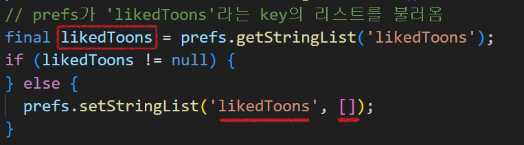 prefs는 'likedToons'라는 key값으로