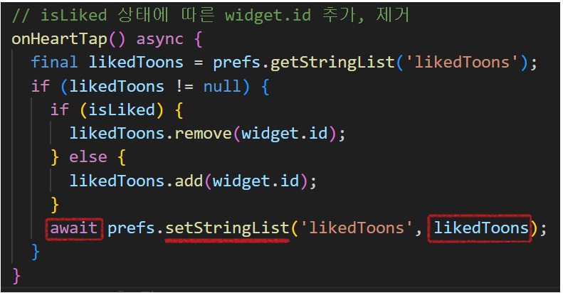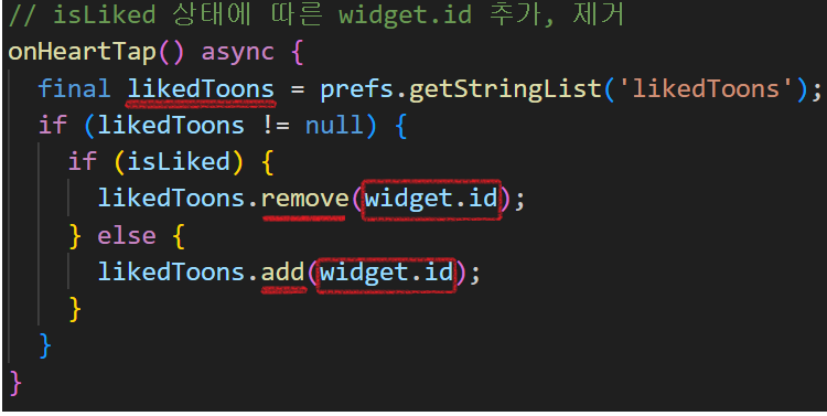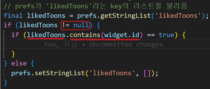 likedToons가 widget.id가 있다고 넘어가면?