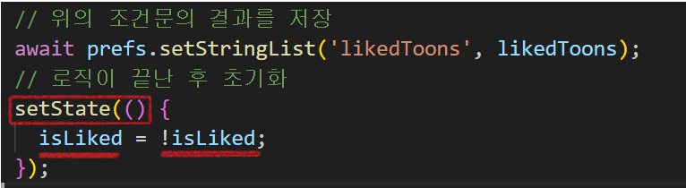 그래서 likedToons라는 변수를 선언하고