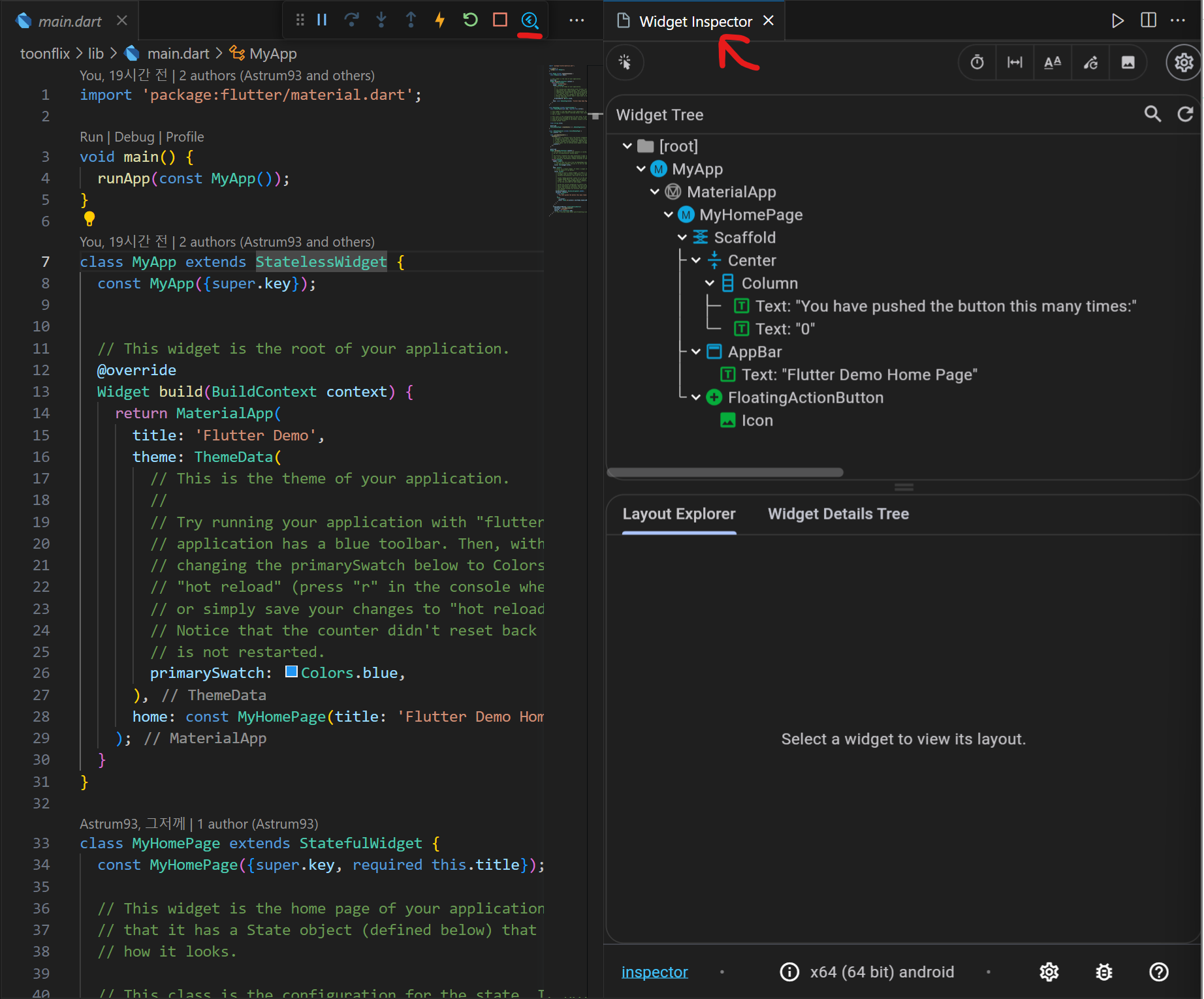 위 코드는 flutter 프로젝트 생성시 기본으로