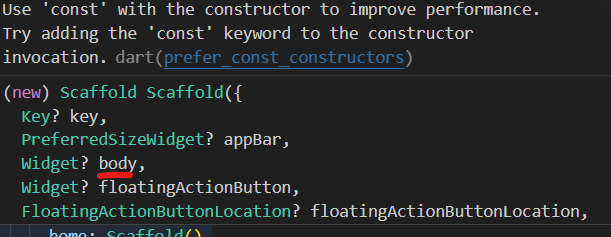 위와 같이 Key? key, Widget? home, String? initialRoute등등의