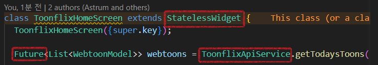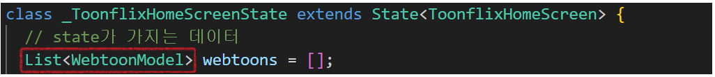 ToonflixApiService의getTodaysToons을 선언해 가져온다.