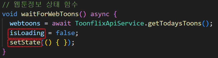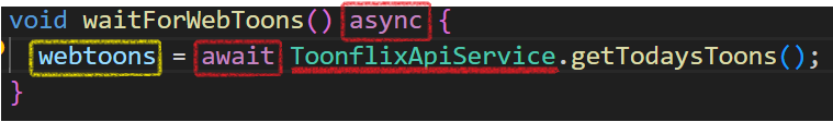 ToonflixApiService의 getTodaysToons()가 비동기 함수 이므로