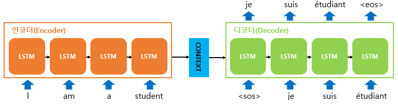 인코더는 입력 문장의 모든 단어들을 순차적으로 입력받고